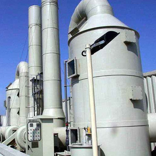 洗滌塔系統(tǒng)之風(fēng)機(jī)組將收集到的廢氣吸入洗滌塔內(nèi),流經(jīng)填充層段(氣/液接觸反應(yīng)之介質(zhì)),讓廢氣與填充物表面流動(dòng)的藥液(洗滌液)充分接觸,以吸附廢氣中所含的酸性或堿性污物。洗滌后,廢液收集至集水槽中,再排放至廢水系統(tǒng)處理。
